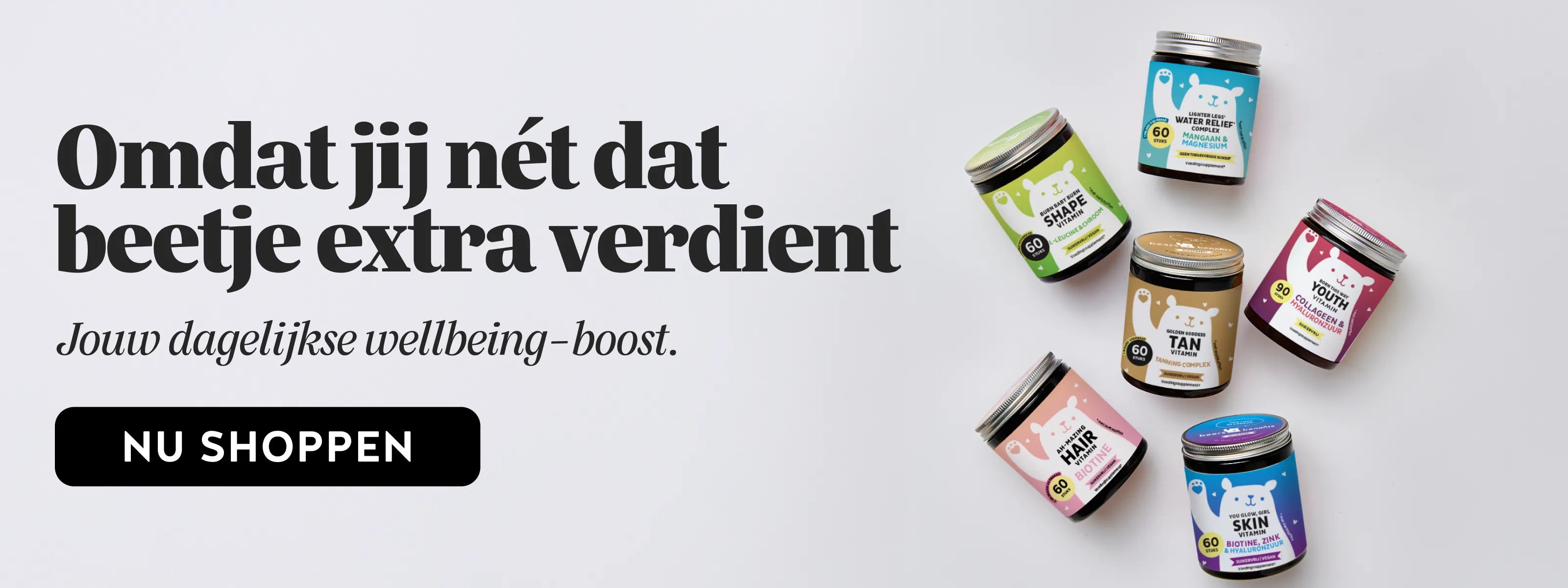 Bij BEARS WITH BENEFITS bieden wij smakelijke en effectieve voedingssupplementen gemaakt onder de hoogste kwaliteitsnormen, met klinisch bewezen effectieve ingrediënten. Geen saaie pillen of capsules, maar hoogwaardige supplementen die naast effectief zijn, ook nog eens heerlijk smaken. Waar mogelijk vegan, of vegetarisch. Maar altijd vrij van onnodige fillers of lossingsmiddelen. Samen met voedingsdeskundige artsen en experts, zoals Dr. Anne Latz en Nassim Jamalzadeh, ontwikkelen we onze producten voortdurend verder om altijd het hoogste kwaliteitsniveau te kunnen garanderen. Ons brede assortiment biedt gegarandeerd producten die speciaal zijn afgestemd op jouw behoeften. Of je nu jouw haar wilt versterken, je huid wilt laten stralen, of je algemene gezondheid wilt verbeteren - wij hebben hét supplement voor jou.